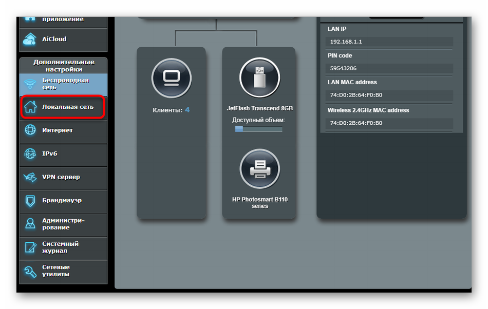 Через меню слева зайдите в раздел «Локальная сеть» или «LAN».