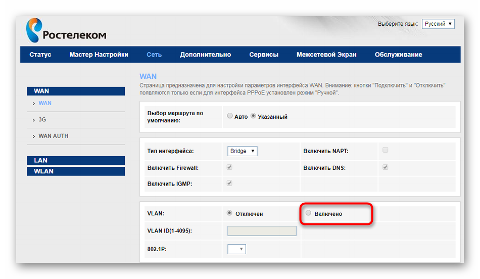 Активируйте режим «VLAN», отметив маркером соответствующий пункт.