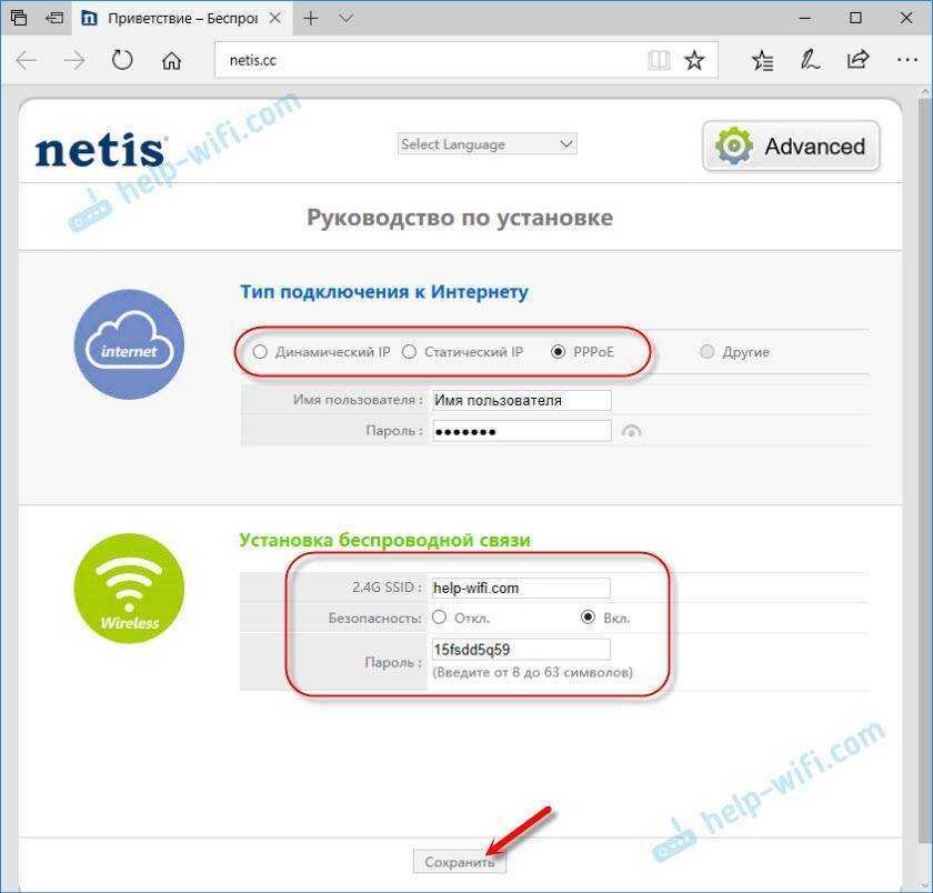 Например, настройка популярного подключения PPPoE (Билайн, Дом.ру) на роутере Netis будет выглядеть так: