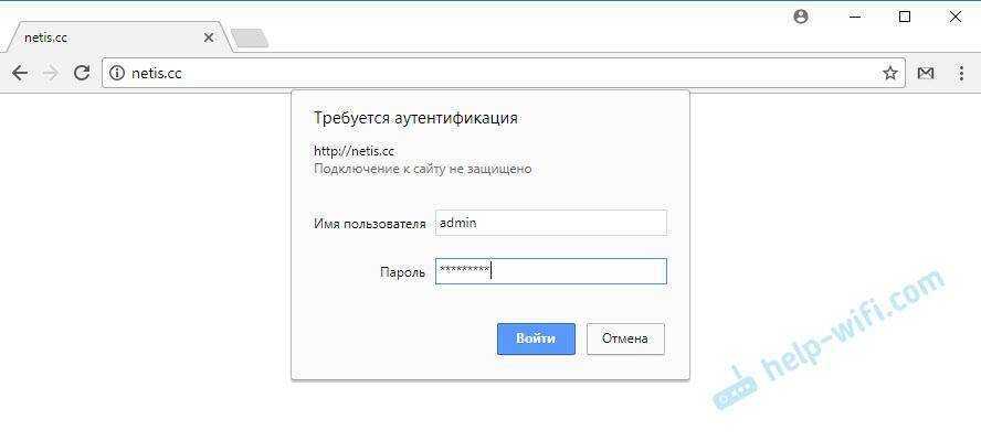 Если от Вас требуется ввести пароль для входа на страницу netis.cc, а то в этом случае роутер ранее настраивался ранее. Если логин и пароль с наклейки не подходят, тогда придётся сделать сброс настроек Нетис до заводских параметров. После этого должен подойти пароль с наклейки.