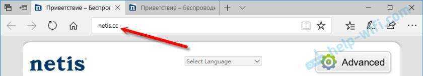 Продолжаем. На устройстве, которое подключено к маршрутизатору открываем любой браузер и переходим по адресу netis.cc. Адрес нужно вводить в адресной строке браузера.