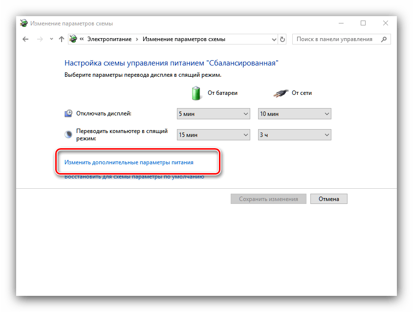 В следующем окне воспользуйтесь пунктом «Изменить дополнительные параметры питания».
