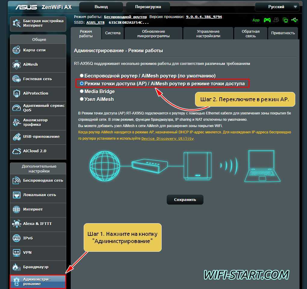 Настройка роутера ASUS в режиме точки доступа (AP)