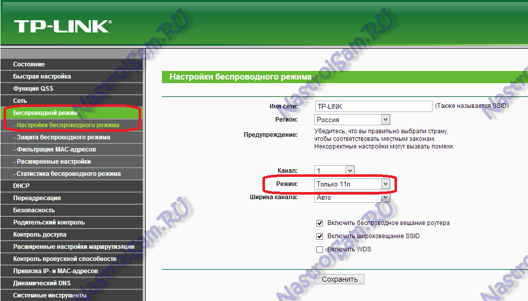 3. Выставляем беспроводной стандарт WiFi — 802.11N.