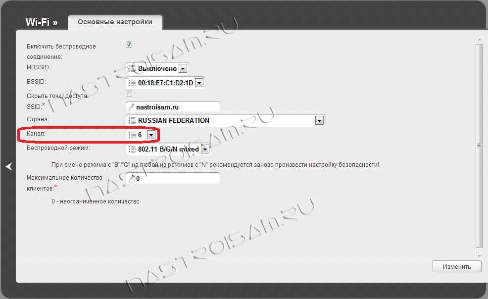 - Если значение канала динамически меняется в разделе «Беспроводная связь», необходимо повторно ввести тип шифрования и сетевой пароль.