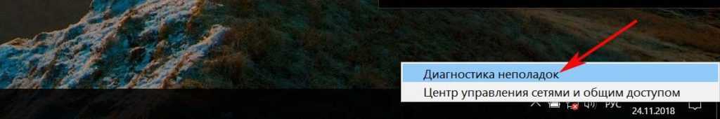 Вариант с диагностикой помогает не часто, но попробовать стоит. Нажмите на значок WiFi, который расположен в трее (рядом находиться время). Выскочит несколько вариантов, выберите «Диагностика неполадок». Проверка будет длиться пару минут, по окончанию Windows выдаст варианты решения проблемы.