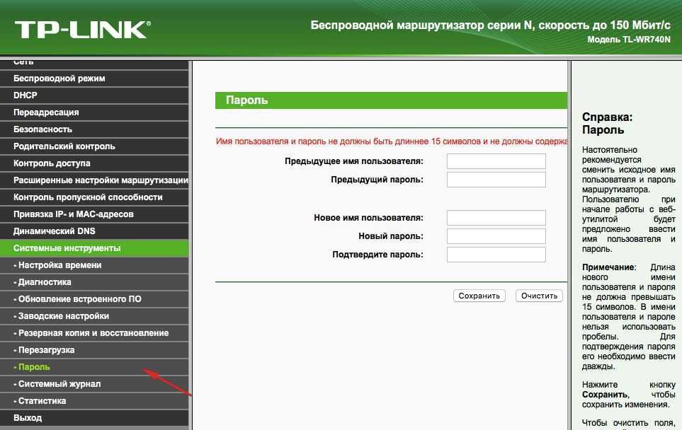 - Смените логин и пароль в веб-интерфейсе роутера. Практически все производители устанавливают стандартные значения. Это увеличивает вероятность несанкционированного доступа к данным. Значения по умолчанию заменяются более сложными. Для этого откройте раздел Системные инструменты, введите новую информацию. Войдите в учетную запись с указанными логином и паролем.