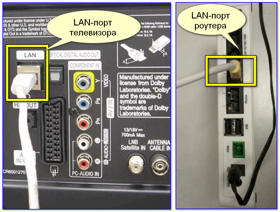 Подключение ТВ к роутеру с помощью сетевого кабеля