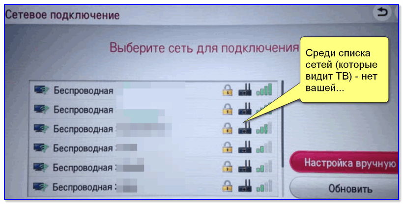 В списке сетей (которые телевизор может видеть) — нет ваших…