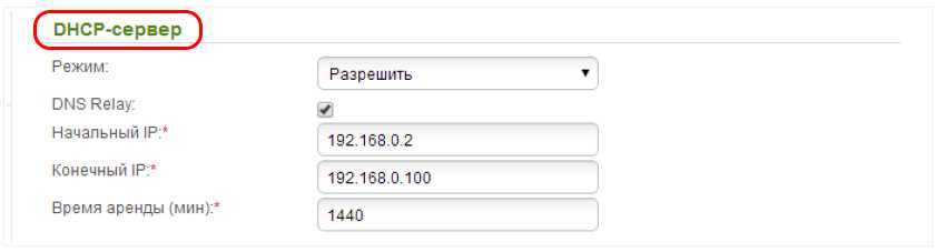 - В разделе «DHCP» оставляем включенным DHCP-сервер.