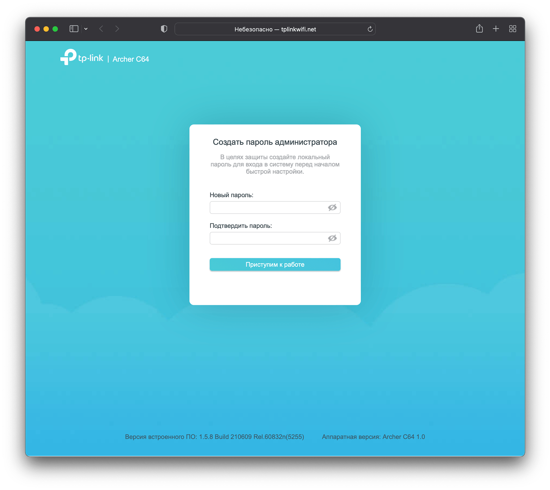 После того как вы подключите роутер к сети, вам нужно подключиться к созданной сети Wi-Fi. После этого заходите на сайт tplinkwifi.net и задавайте пароль для вашего аккаунта: