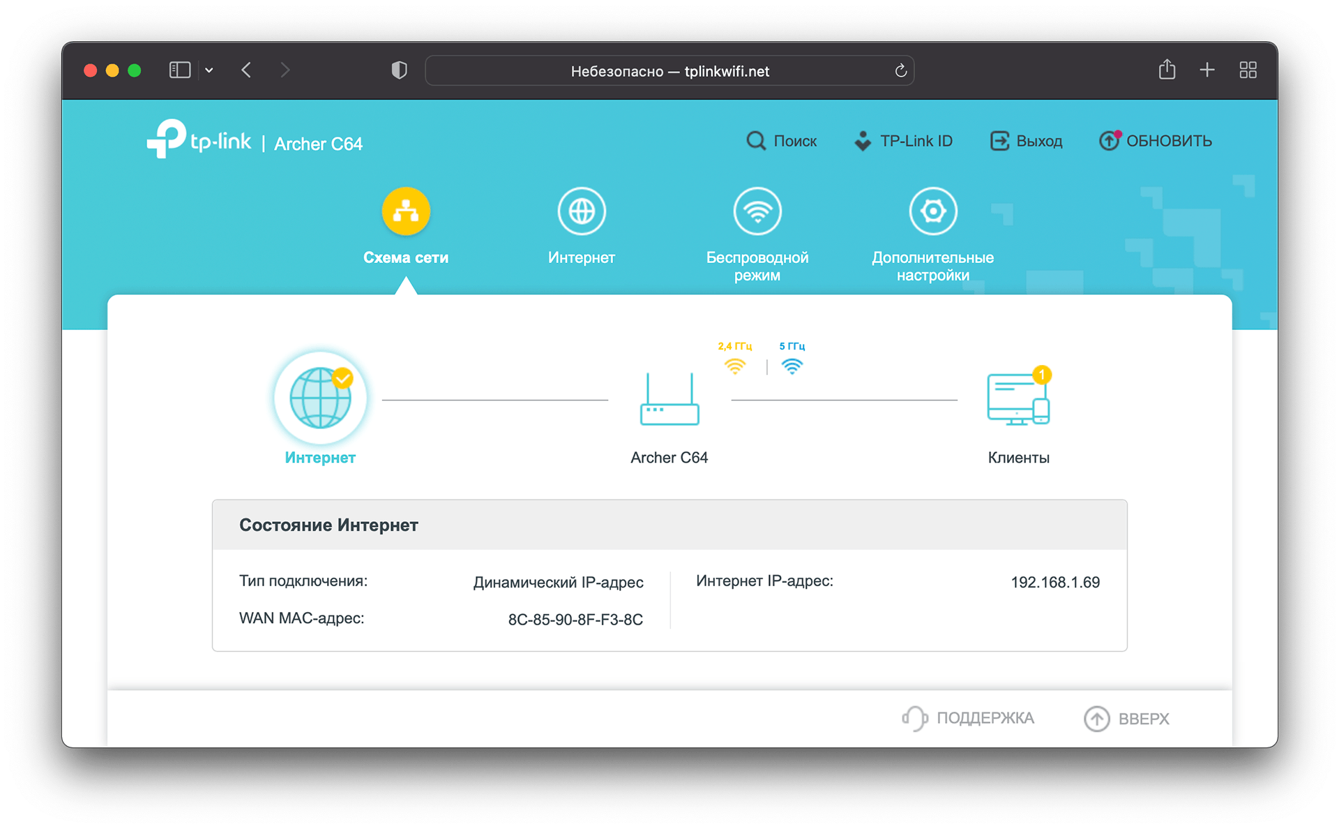 Готово. Вы вошли в панель настроек, однако это не конец, ведь настройка двухдиапазонного роутера TP-Link Archer C20 только начинается.