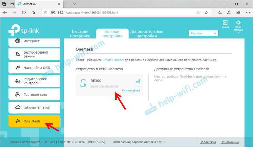 Если у вас нет такого раздела в веб-интерфейсе роутера, то убедитесь, что ваш роутер есть в списке устройств с поддержкой OneMesh (проверить можно на сайте TPLink, ссылка есть в начале статьи). Если есть – обновите прошивку.