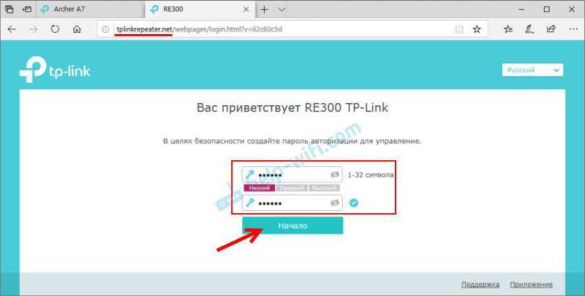Дальше открываем любой браузер и переходим по адресу tplinkrepeater.net (подробнее в этой статье). Репитер предлагает нам задать пароль администратора (для защиты страницы с настройками). Придумываем, задаем его и продолжаем.