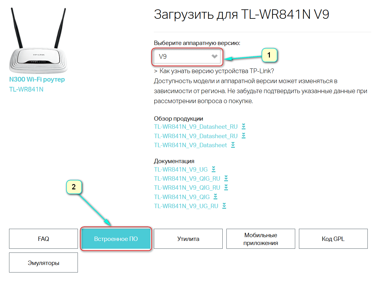 После выбора аппаратной версии прокручиваем страницу, в самом низу находим вкладку Встроенное ПО (то есть прошивка).