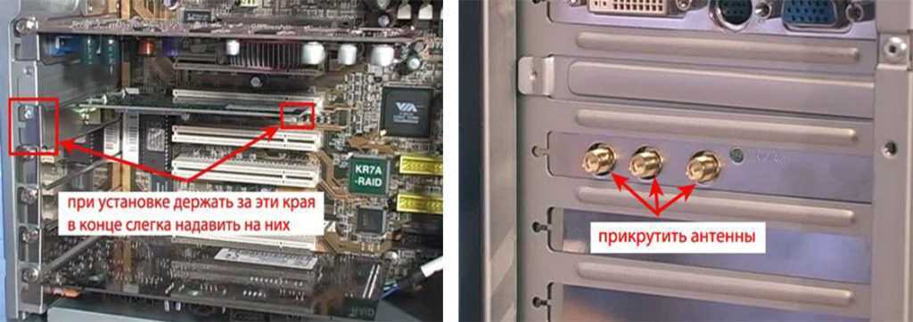 - Вставляем Wi-Fi адаптер в PCI слот. Проверяем подсоединен ли он плотно в разъем.
