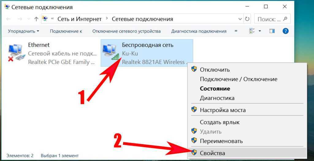Вы окажитесь в окне, где отображены все доступные адаптеры. Жмите ПКМ на иконке «Беспроводная сеть», «Свойства».