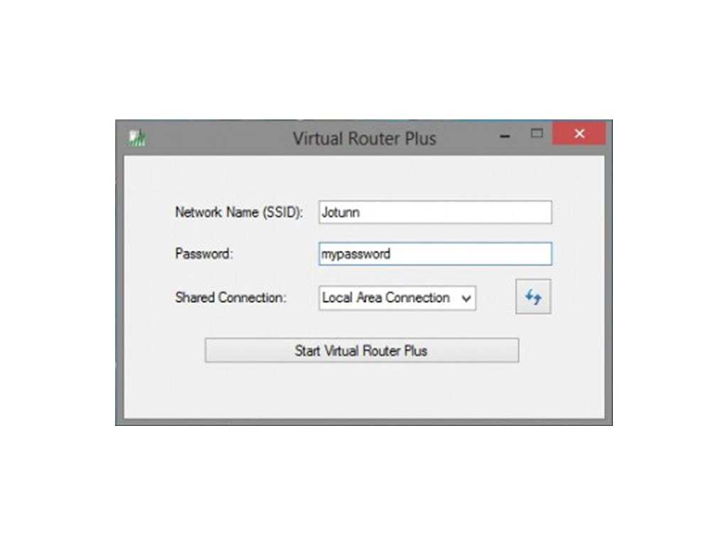 Интерфейс программы Virtual Router Plus, позволяющей делиться Интернетом с ноутбука