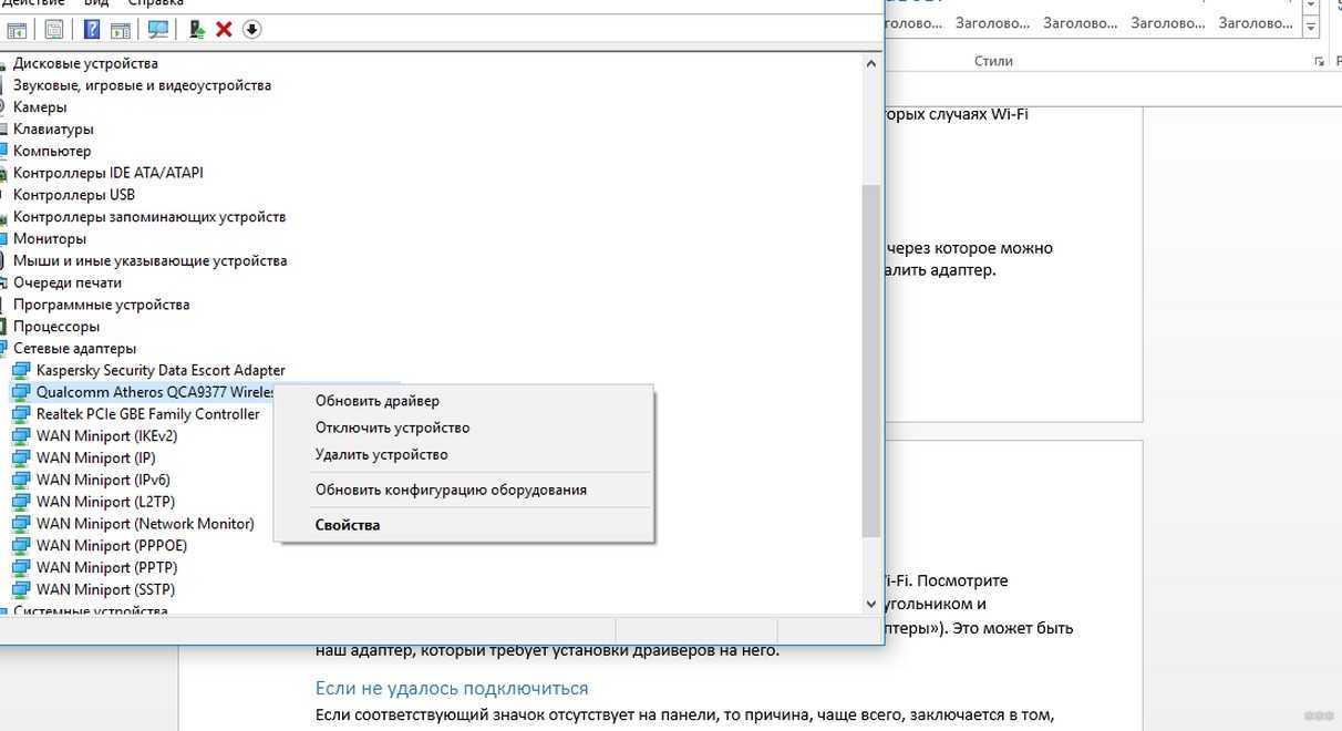 Обновление драйвера Wi-Fi адаптера на ноутбуке Windows 10