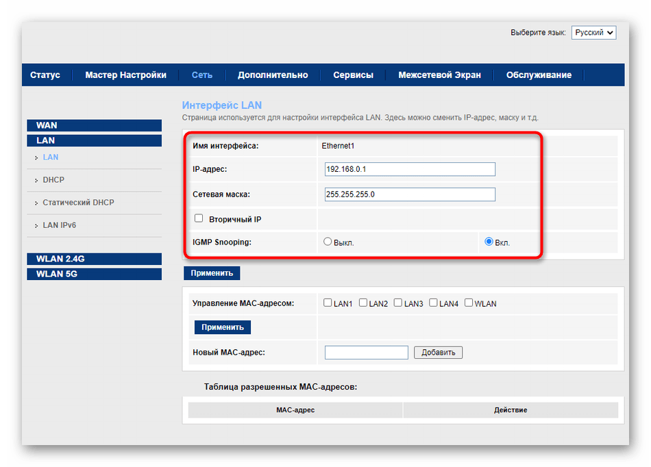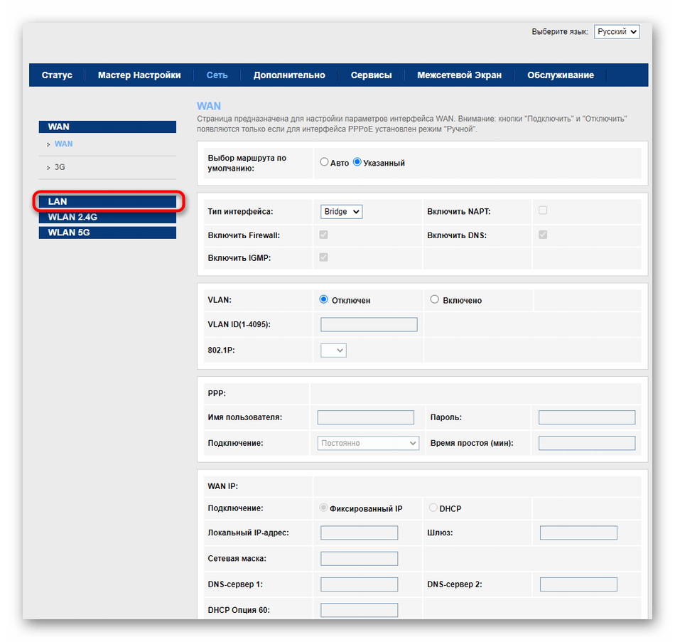 - В веб-интерфейсе вас интересует раздел «LAN».