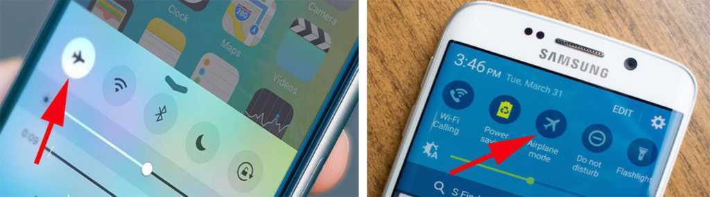 - В первом случае делается свайп сверху вниз, нажимается кнопка «Режим полета», а потом отключается.