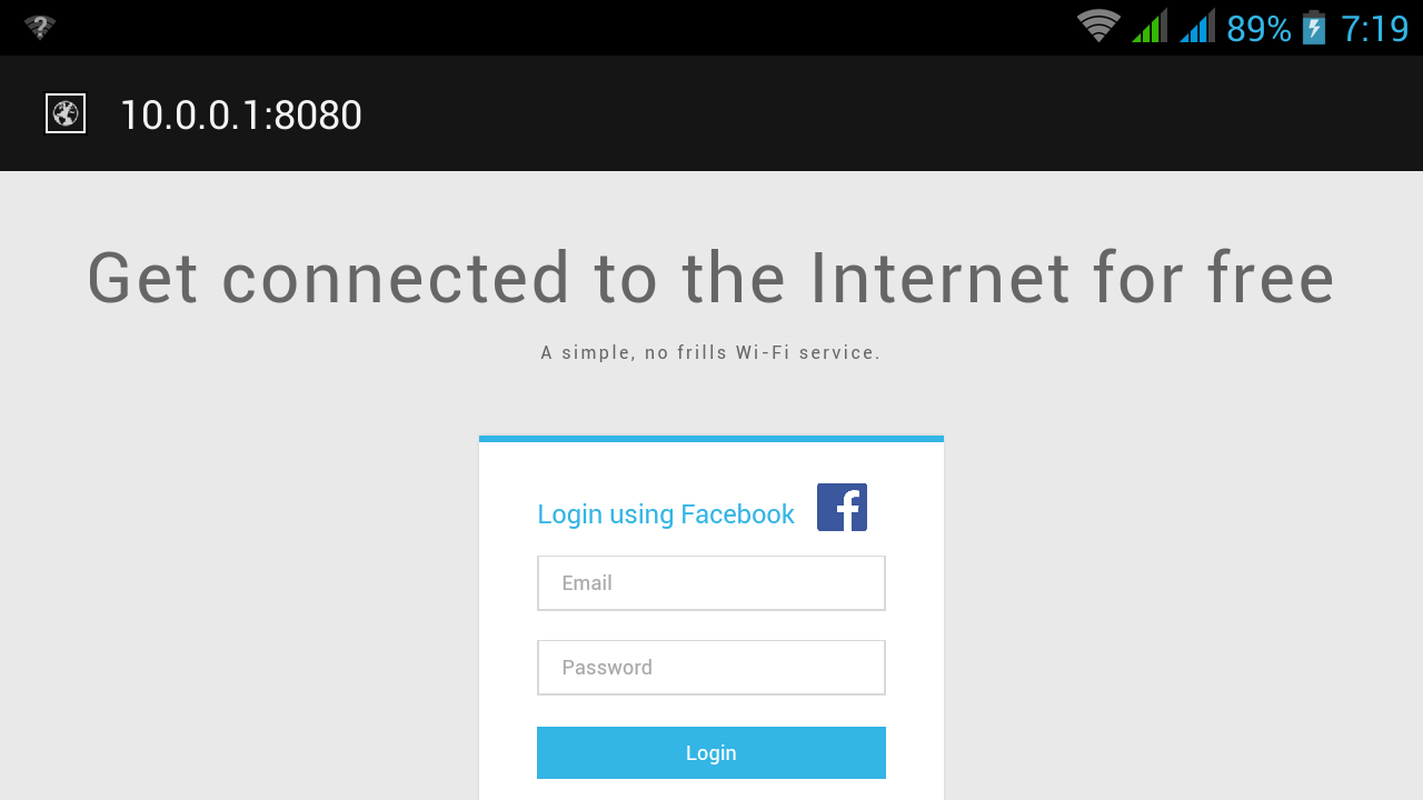 Бесплатная Wi-F служба спрашивает учётные данные Facebook для аутентификации с использованием OAuth
