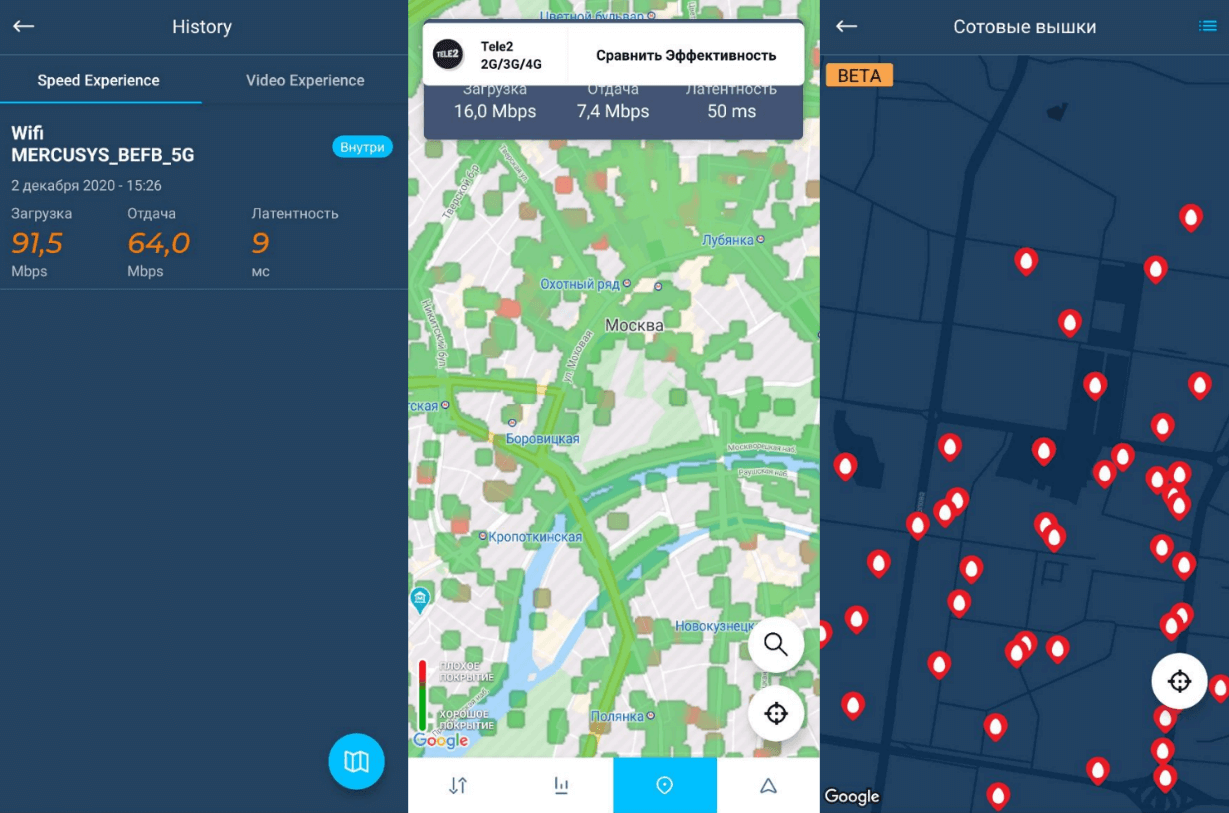 Приложение можно назвать лучшим по нескольким причинам. Главная из причин — OpenSignal сравнивает сигналы от четырех главных операторов России и определяет, какой из них работает лучше в вашей квартире. Присутствует и карта покрытия, показывающая уровень сигнала. В общем, здесь действительно много функций, позволяющих выявить причину медленной работы сети, что и делает это приложение одним из лучших.