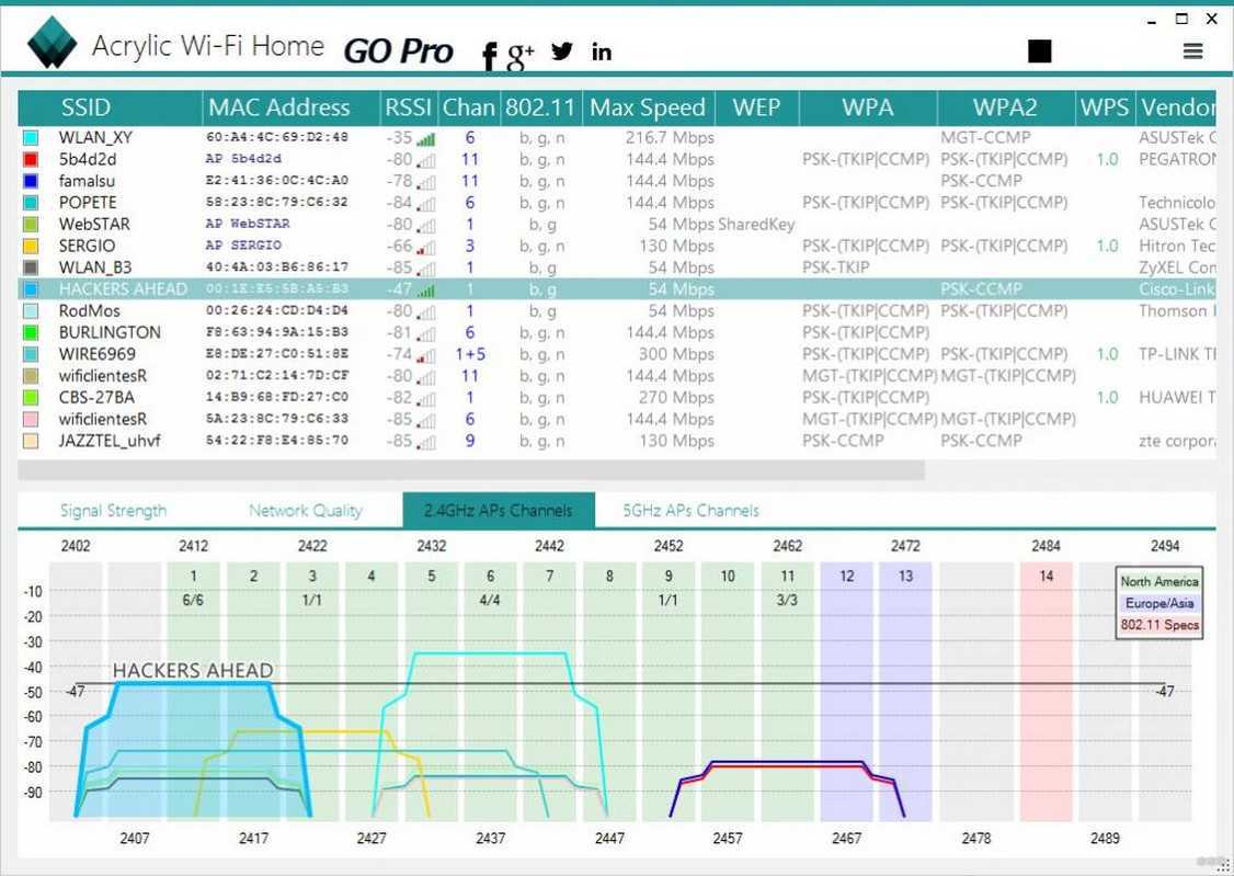 - Акриловый Wi-Fi — Wi-Fi анализатор для Windows, бесплатный для домашнего использования, но бизнес-клиенты должны платить.