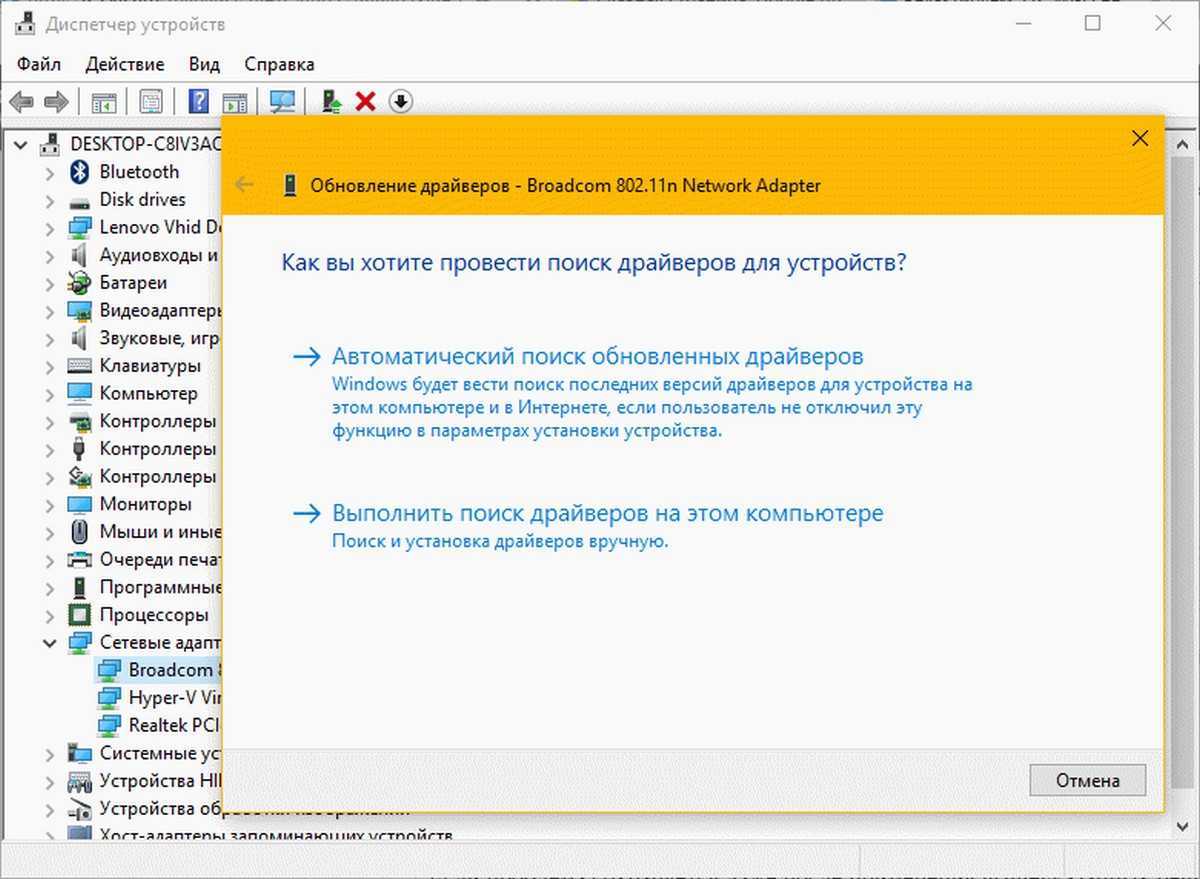 ❷ Проверьте и обновите драйвер на Wi-Fi адаптер
