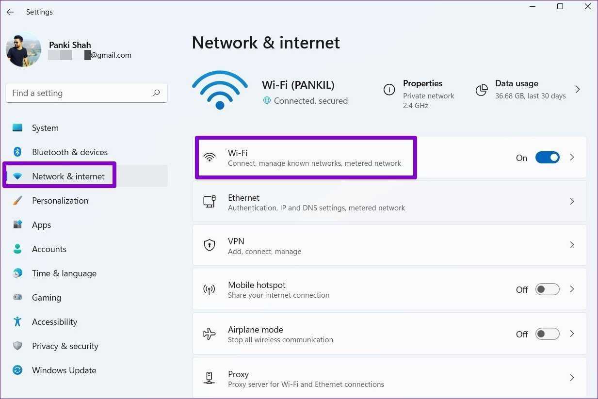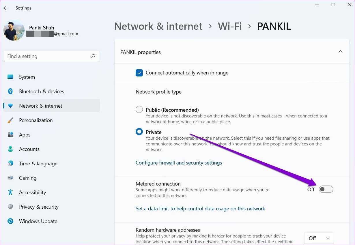 Если у вас мало интернет-плана или вы используете арендованное портативное устройство Wi-Fi, возможно, вы попросили Windows пометить ваше подключение как лимитное. Это может помешать приложениям на вашем ПК с Windows 11 получить доступ к Wi-Fi после достижения этого ограничения. Таким образом, вы можете попробовать отключить его, выполнив следующие действия.