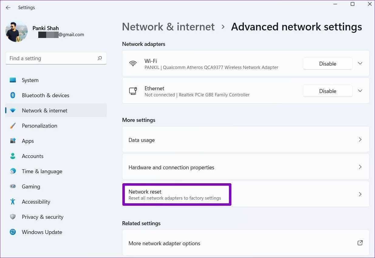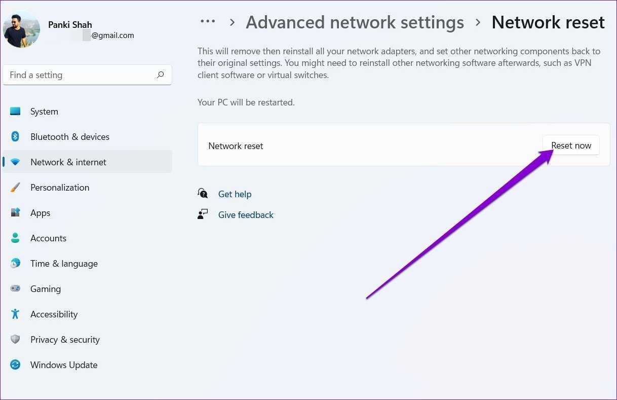 Если перезагрузка ПК не помогает, вы можете рассмотреть возможность сброса сетевых настроек на ПК с Windows. Это удалит все ваши сетевые адаптеры и сбросит настройки сети к значениям по умолчанию. Вот как это сделать.