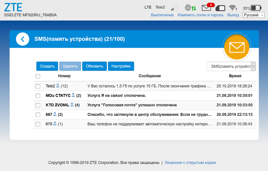 Тем не менее у устройства имеется утилита настройки, в которой можно поменять пароль и имя сети, узнать статус маршрутизатора и даже отсылать и читать СМС-сообщения. Доступ к ней возможен как со стационарных компьютеров или ноутбуков посредством веб-интерфейса, так и с мобильных гаджетов (смартфонов, планшетов) через фирменное приложение. Функционал обеих программ одинаков, но интерфейс мобильного приложения адаптирован уменьшенному экрану.